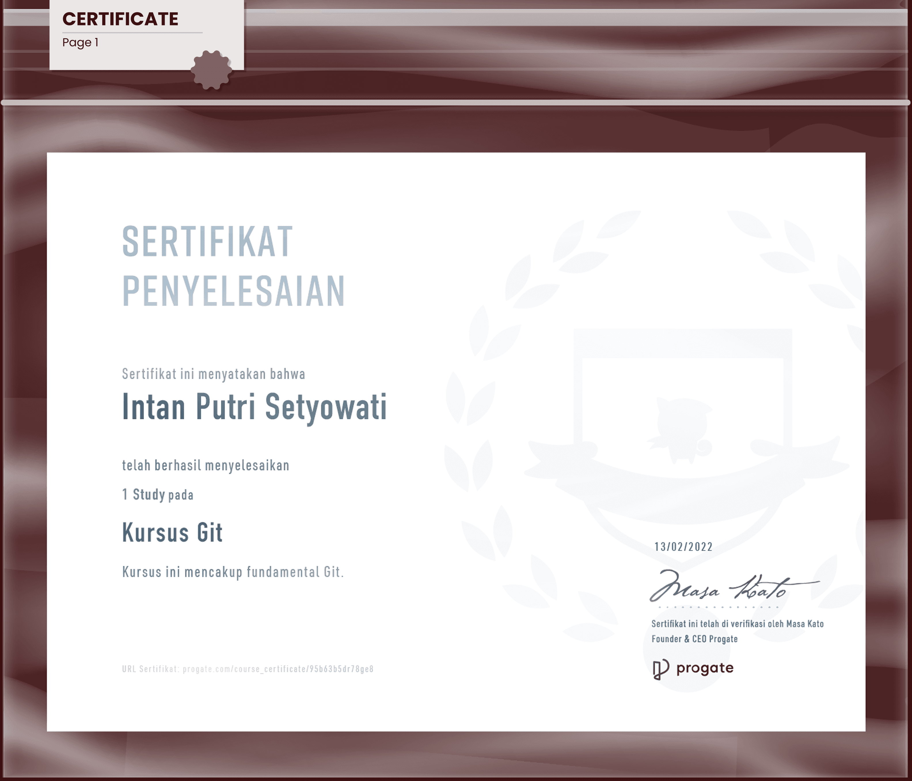 Progate Course Certification
