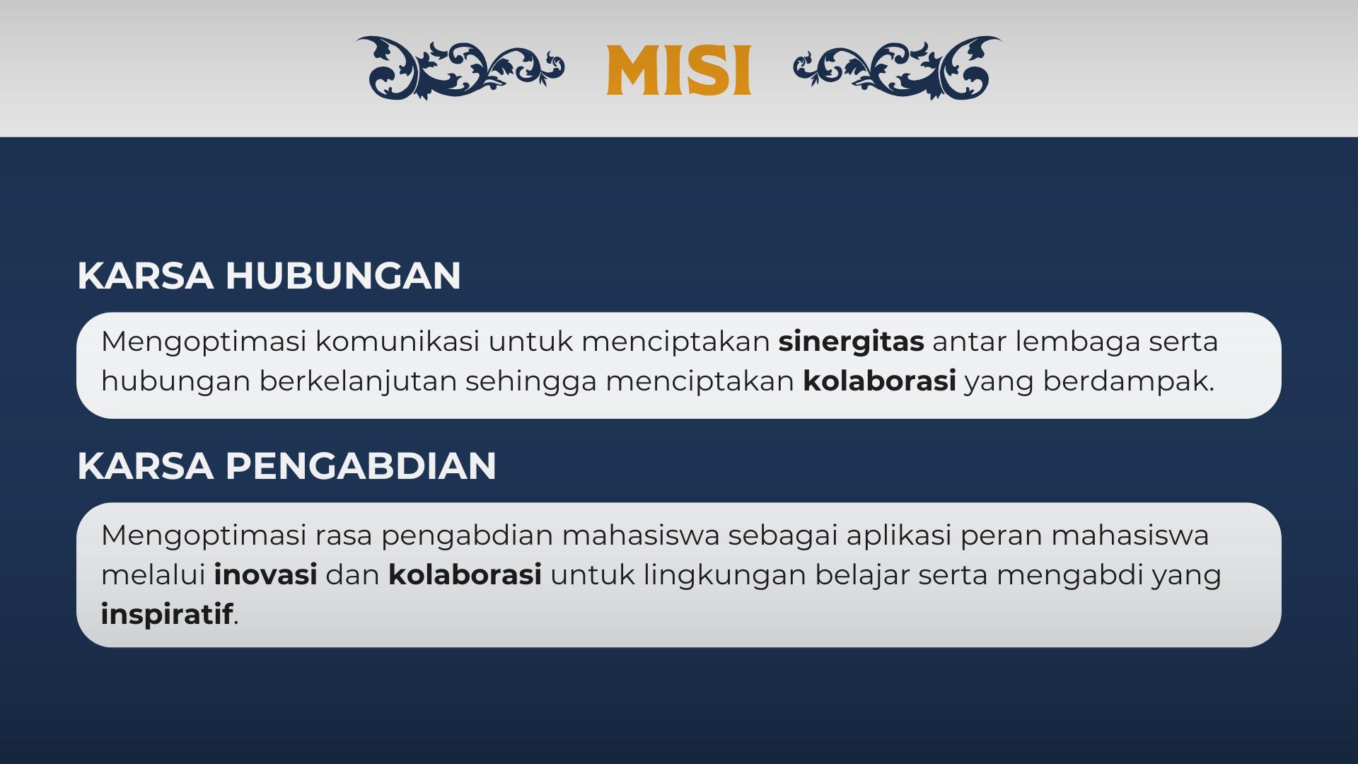 Rumah ini berdiri kokoh di atas 7 pilar utama, yang masing-masing merepresentasikan karsa berbeda: internal, pengembangan, pergerakan, pelayanan, pengabdian, kaderisasi, dan hubungan.
