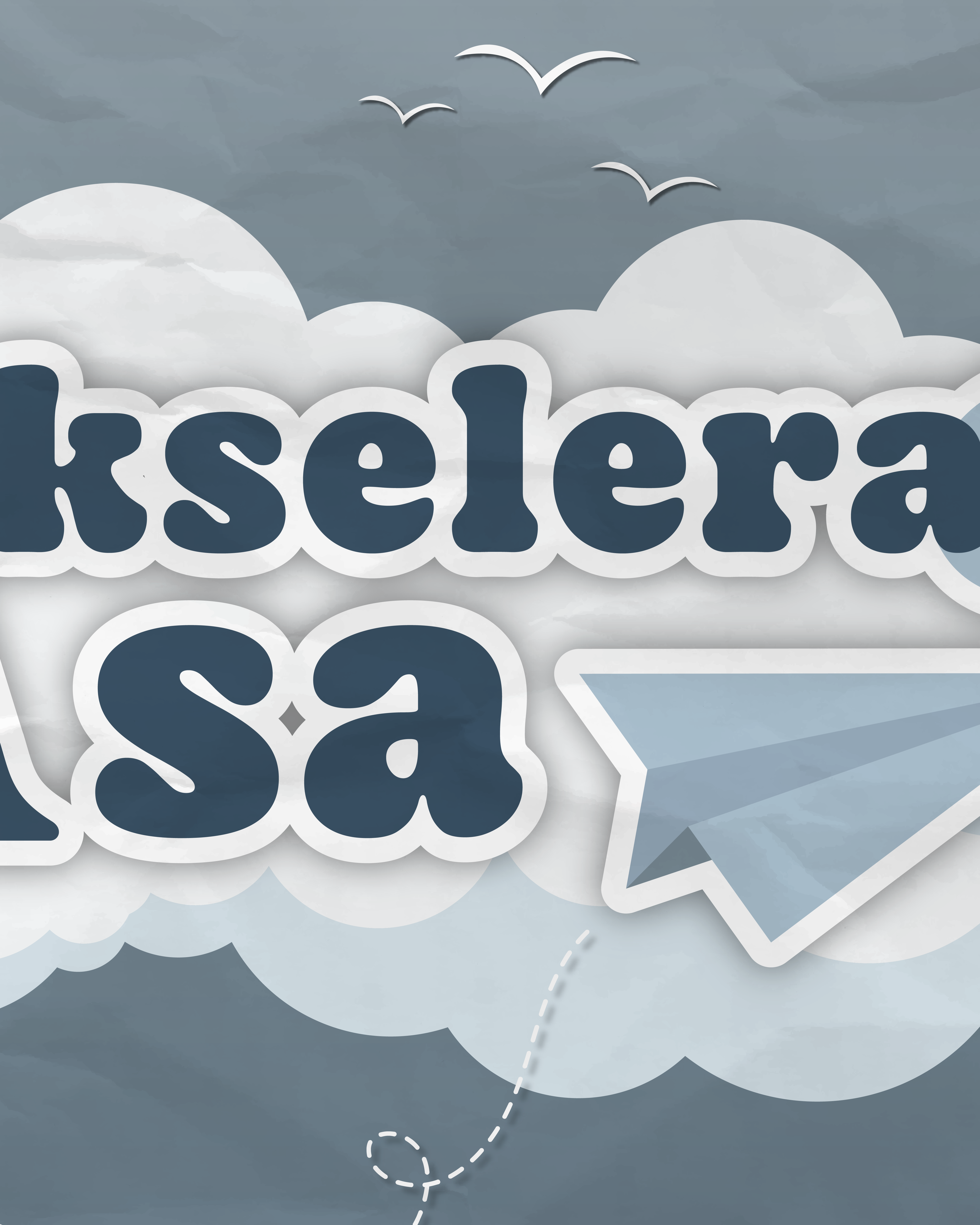 Akselerasi Asa is an Instagram-style design with a modern, inspirational look, using soft pastel blues, cloud elements, and ripped-paper textures to create a light and hopeful atmosphere. Visuals like paper airplanes and open skies symbolize growth and forward movement, making the content feel warm, clear, and visually engaging.