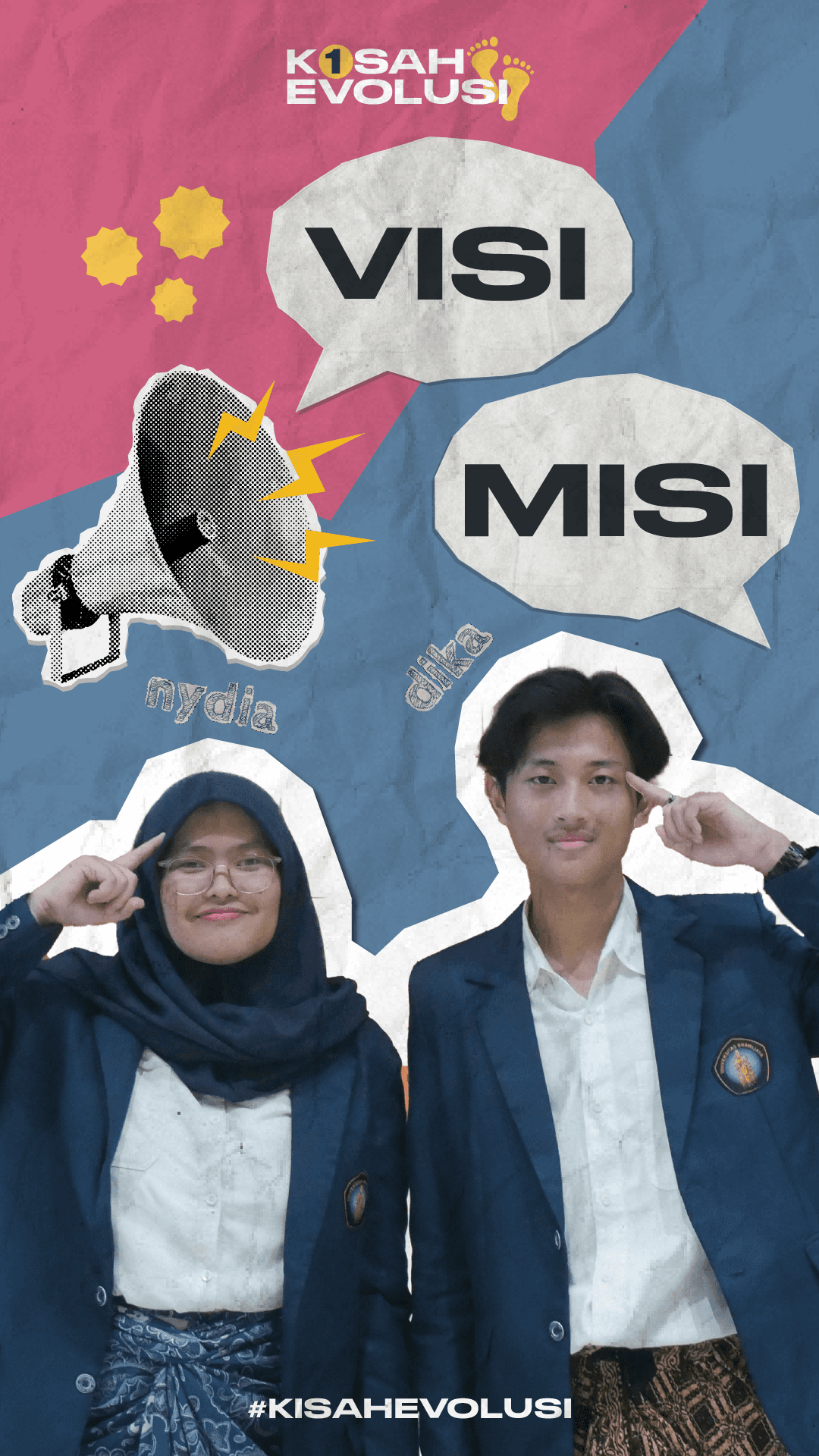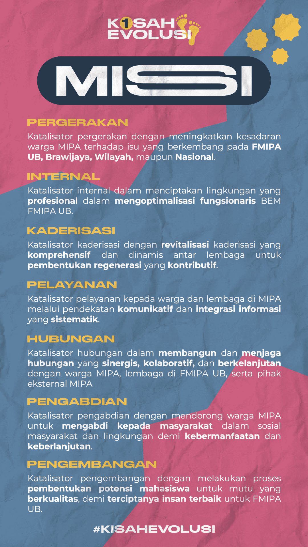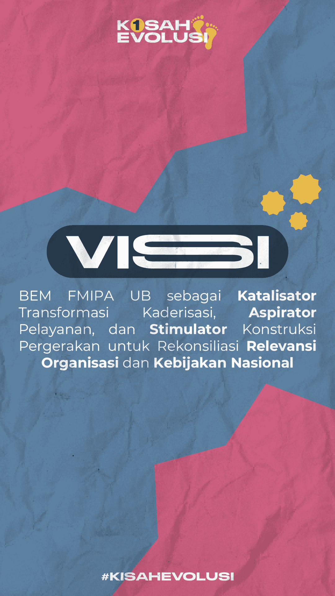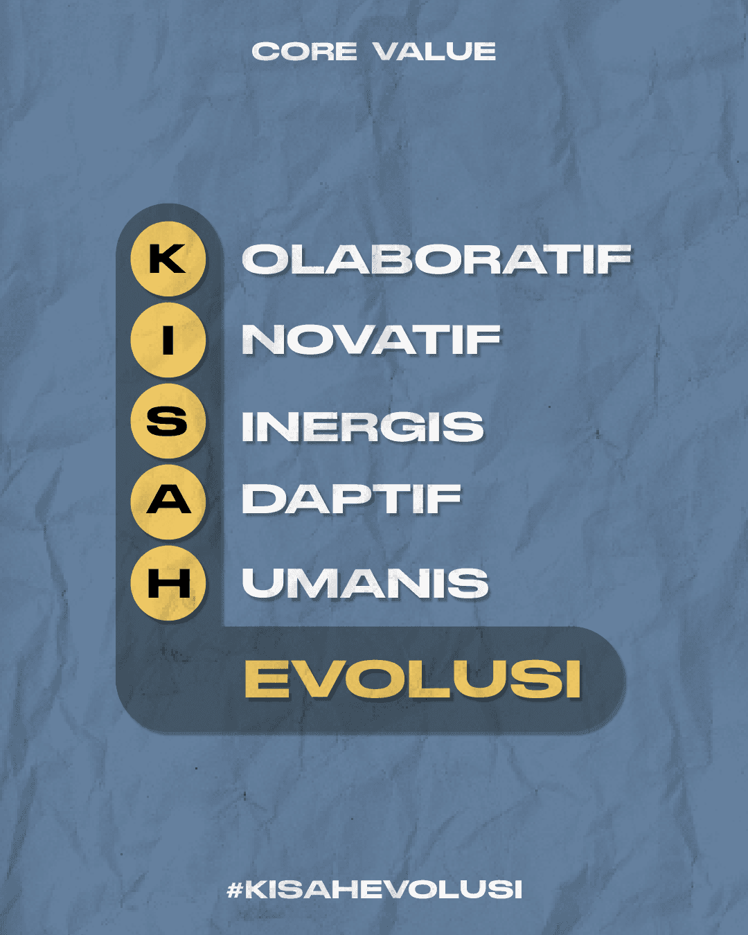 Kisah Evolusi is an Instagram-style design created to present the brand’s vision, mission, core values, and innovation programs. It uses a fresh modern look with pastel colors, ripped paper textures, and playful icons to create a warm, approachable, and visually engaging feel.