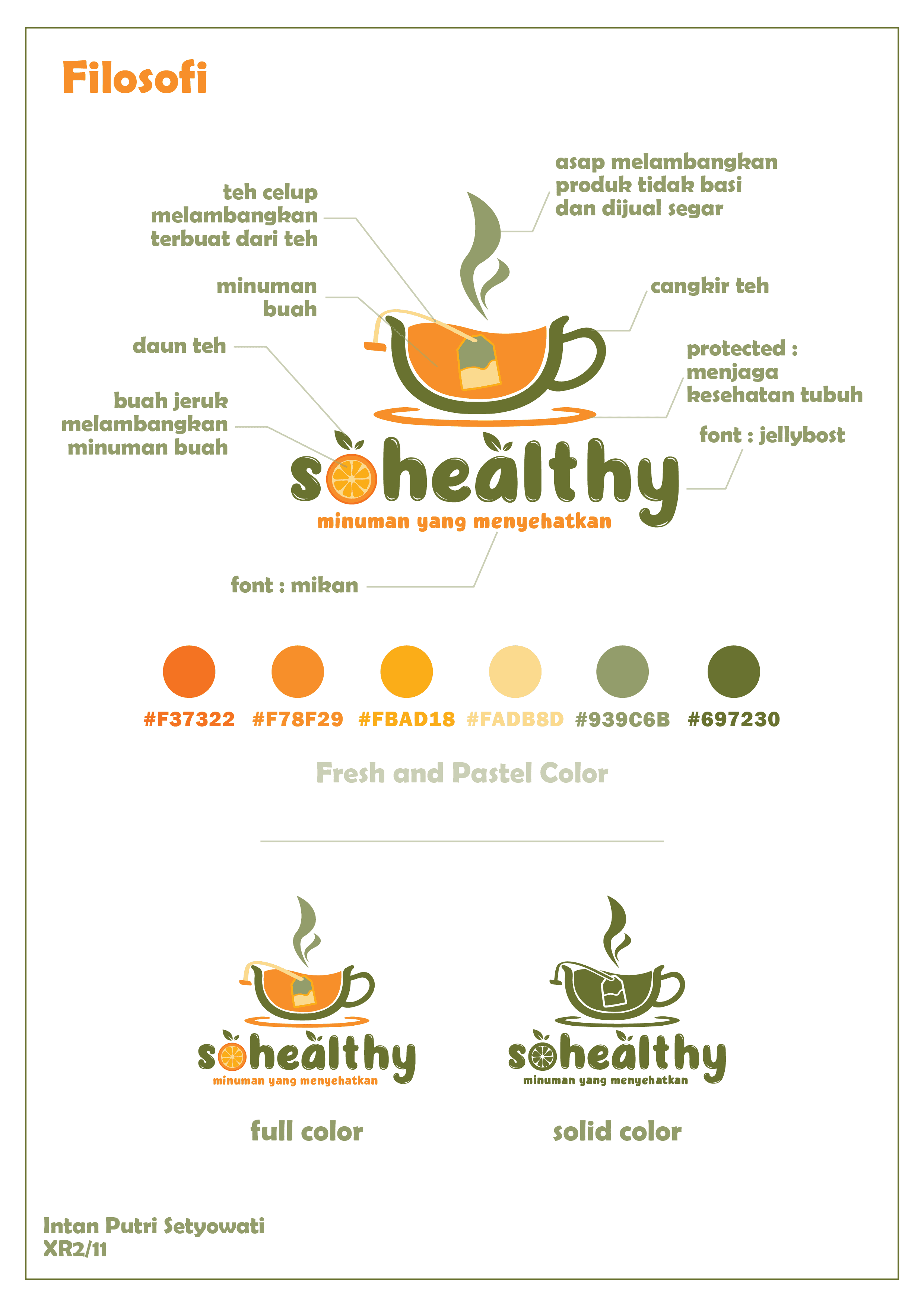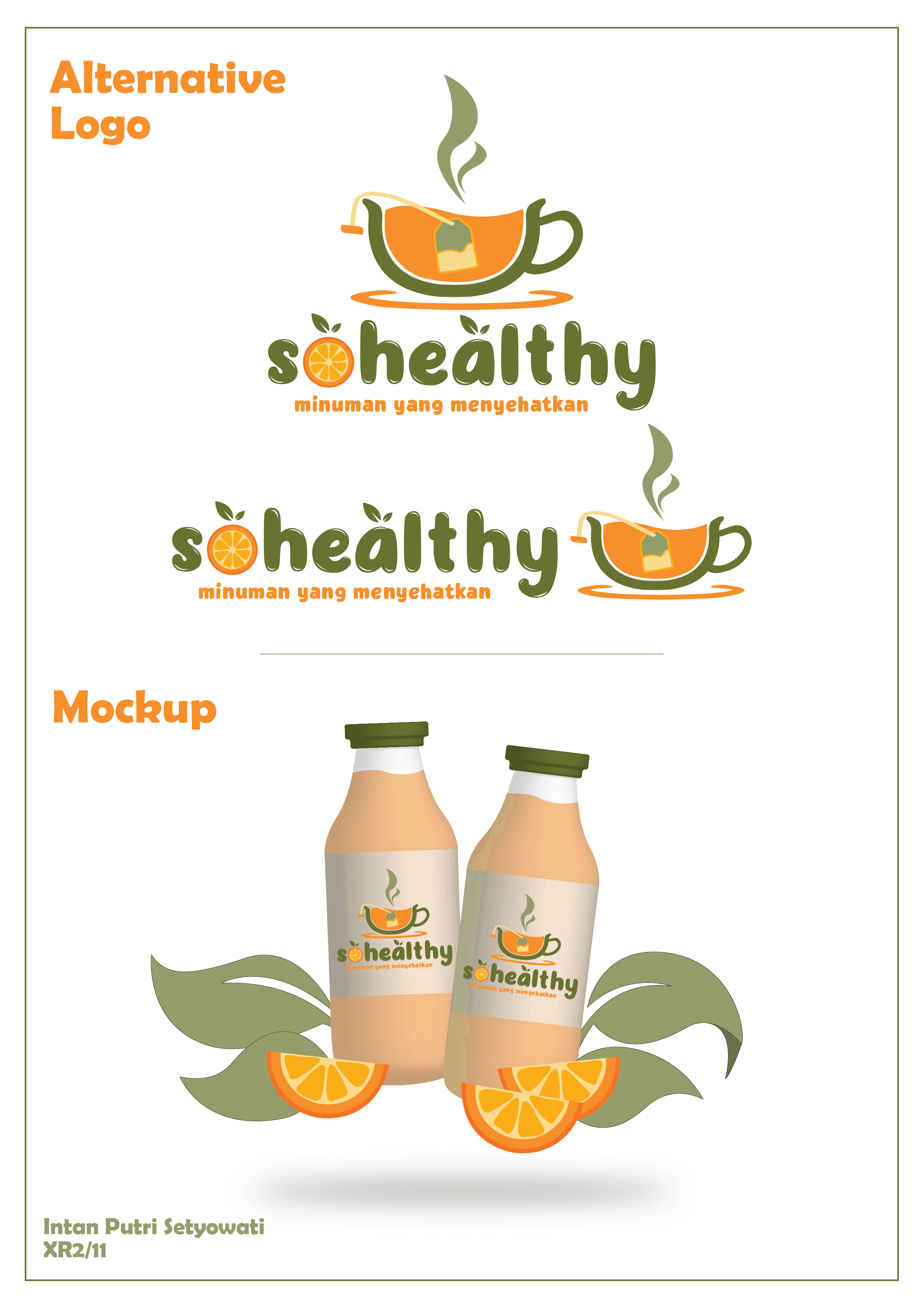 SoHealthy is a fresh natural logo designed for a healthy beverage brand. It features a tea cup with rising steam to show freshness and quality. A tea bag represents tea based drinks, an orange slice stands for fruit beverages, and tea leaves highlight the use of natural ingredients. The design blends simple visuals to clearly reflect the brand’s focus on health and nature.