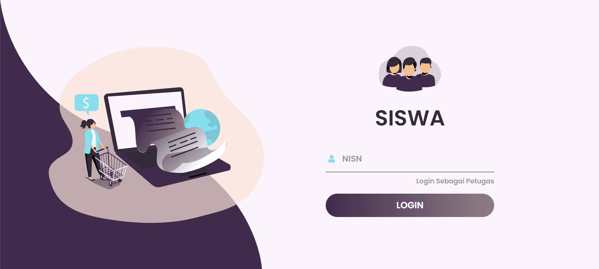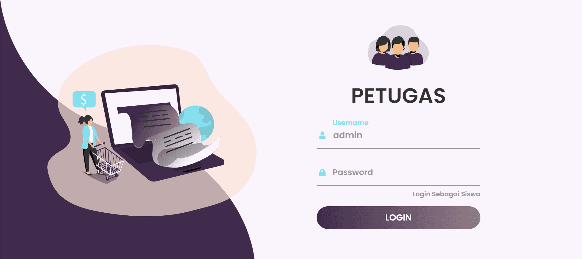 Login page for admin, staff, and student roles to access the SPP payment system.