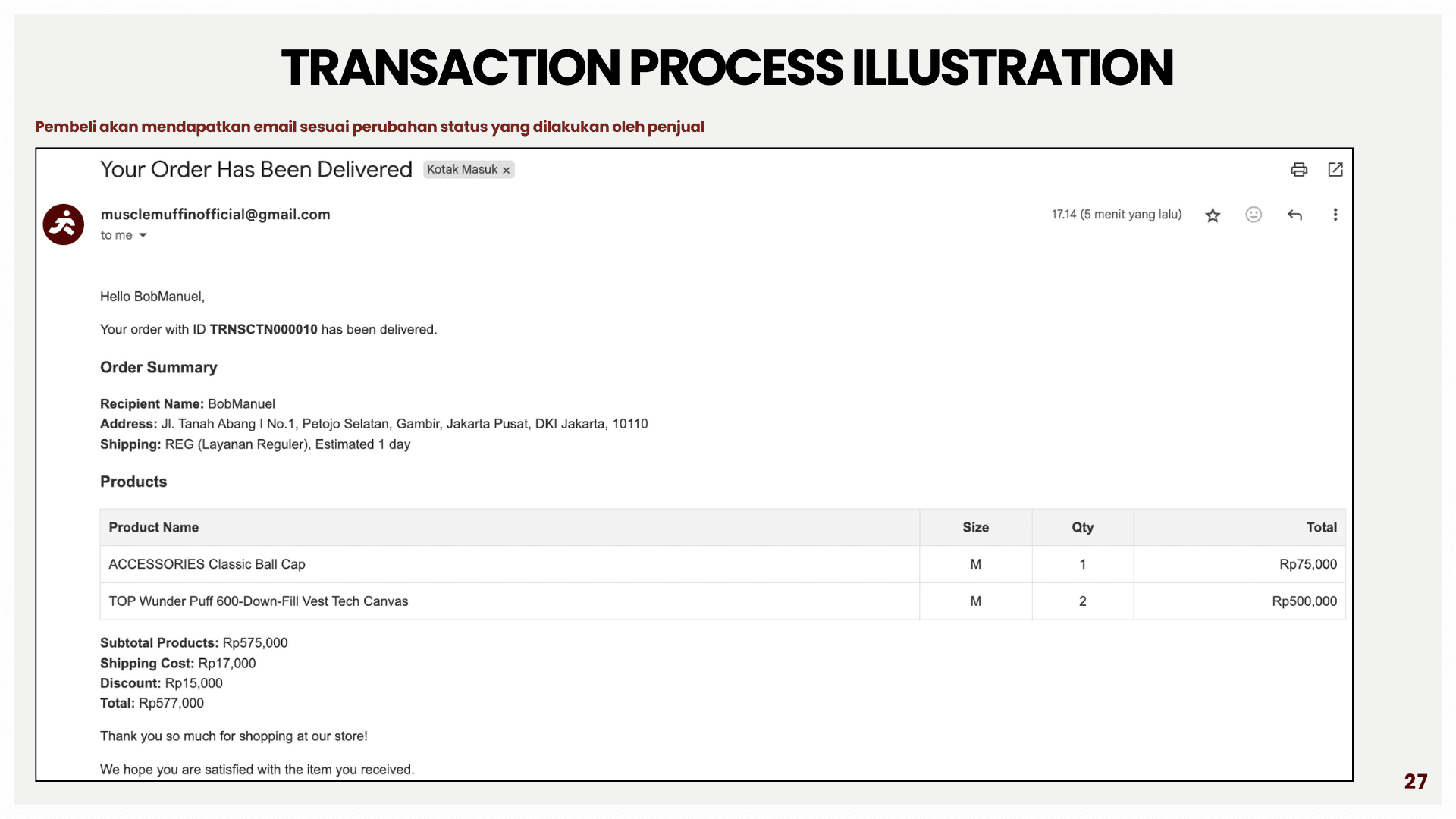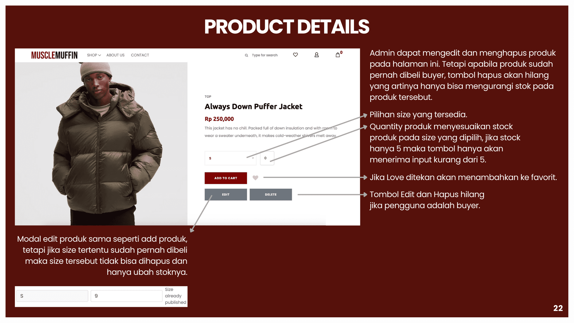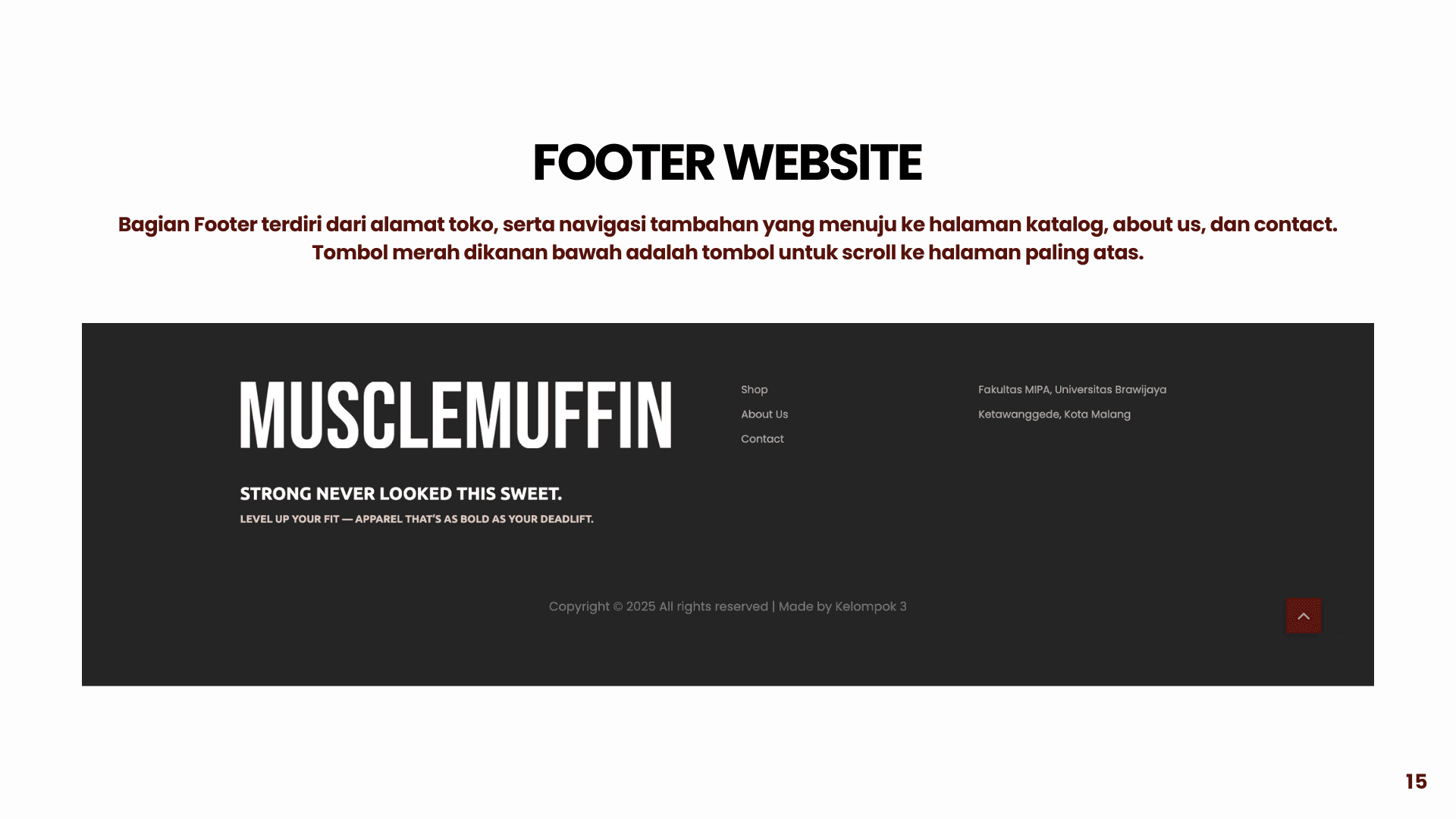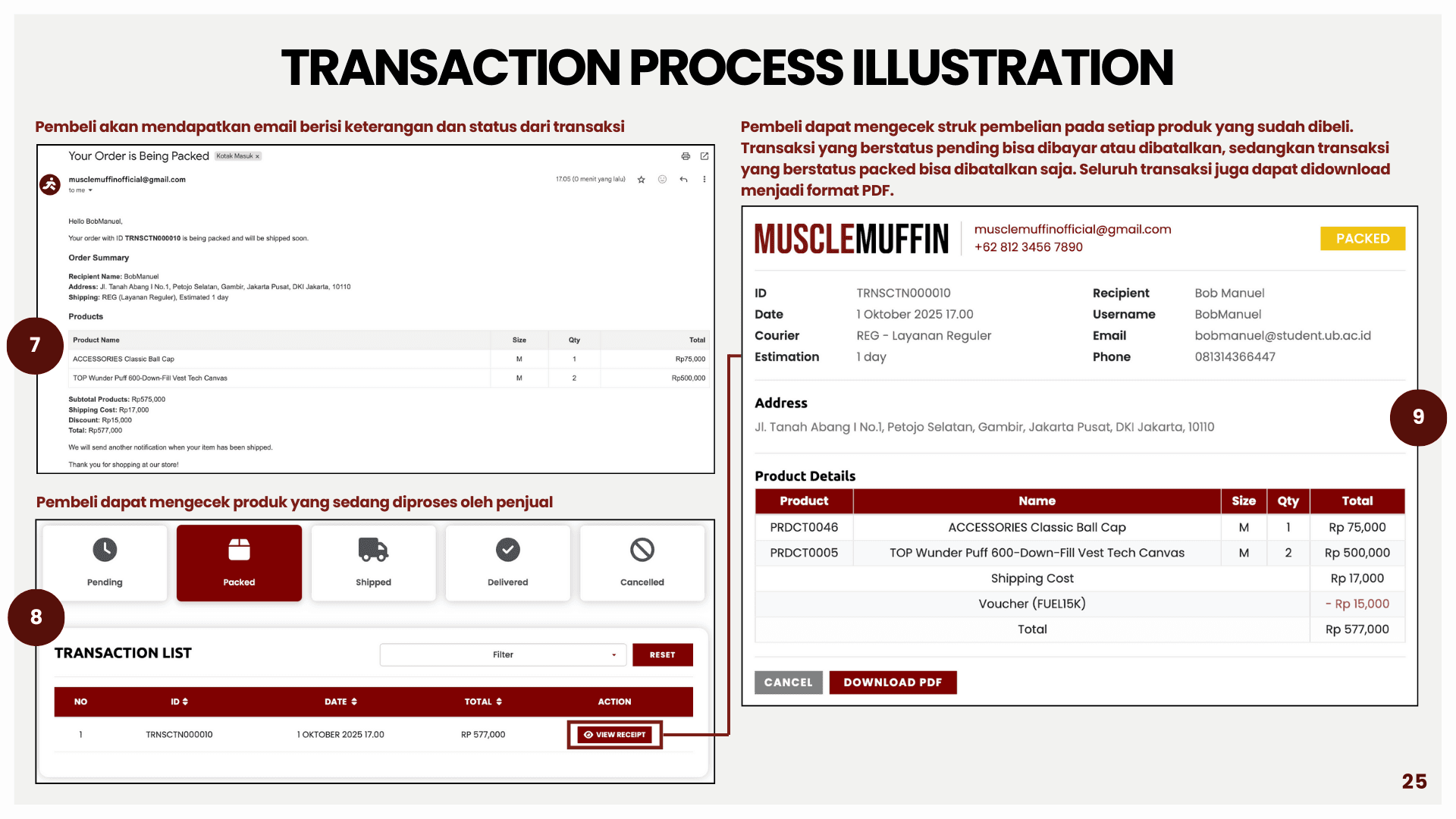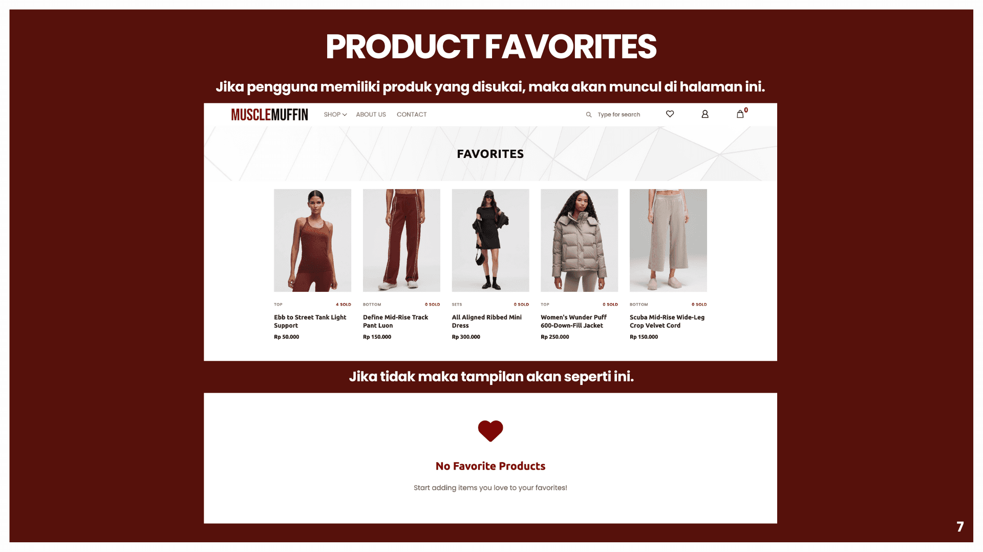 This project is about building a sports e-commerce platform called Muscle Muffin to support online buying and selling of sports apparel and accessories in an integrated system. The platform aims to solve problems such as inefficient product browsing, unclear transaction flow, and lack of real-time information. Using a web-based architecture, data for users, products, orders, and transactions are managed in a centralized database using MySQL and Flask. The system is developed with HTML, CSS, and JavaScript for the front end, and integrates features such as coupon management, automated email notifications, and the RajaOngkir API for real-time shipping cost calculation. This helps both customers and administrators track orders, manage products, and run the store more efficiently and accurately.